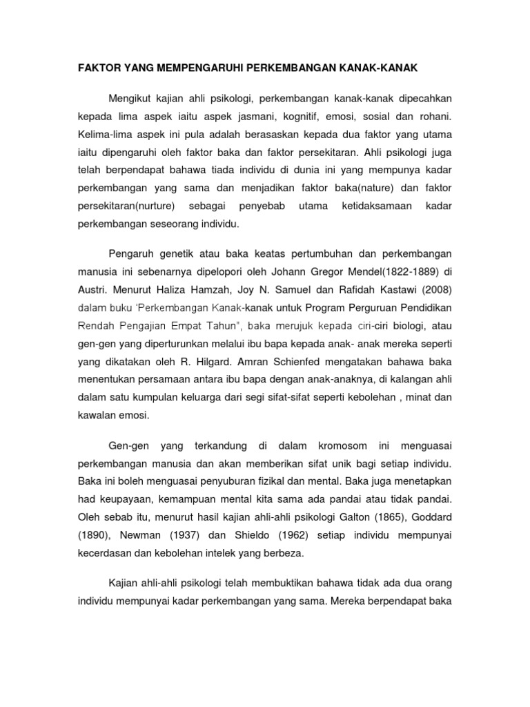 Faktor Yang Mempengaruhi Perkembangan Kanak-Kanak / Perkembangan juga dipengaruhi oleh faktor baka dan persekitaran.