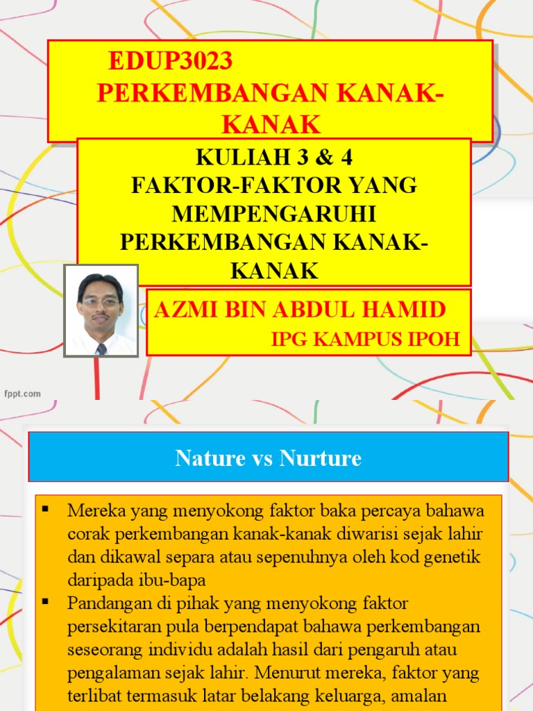 Related : Faktor Yang Mempengaruhi Perkembangan Kanak-Kanak / Perkembangan juga dipengaruhi oleh faktor baka dan persekitaran..